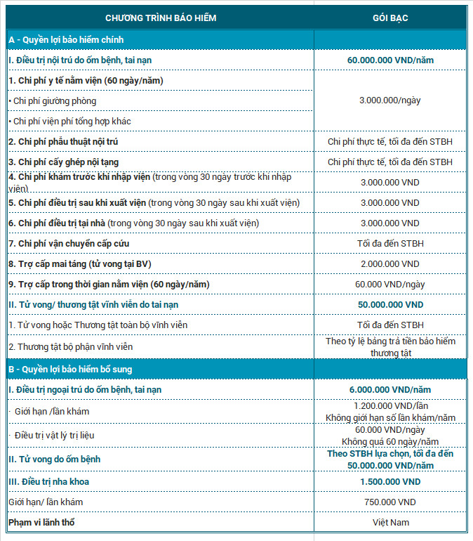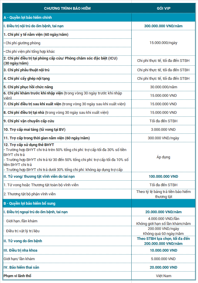 b. Quyền lợi bổ sung: Được lựa chọn khi tham gia quyền lợi chính